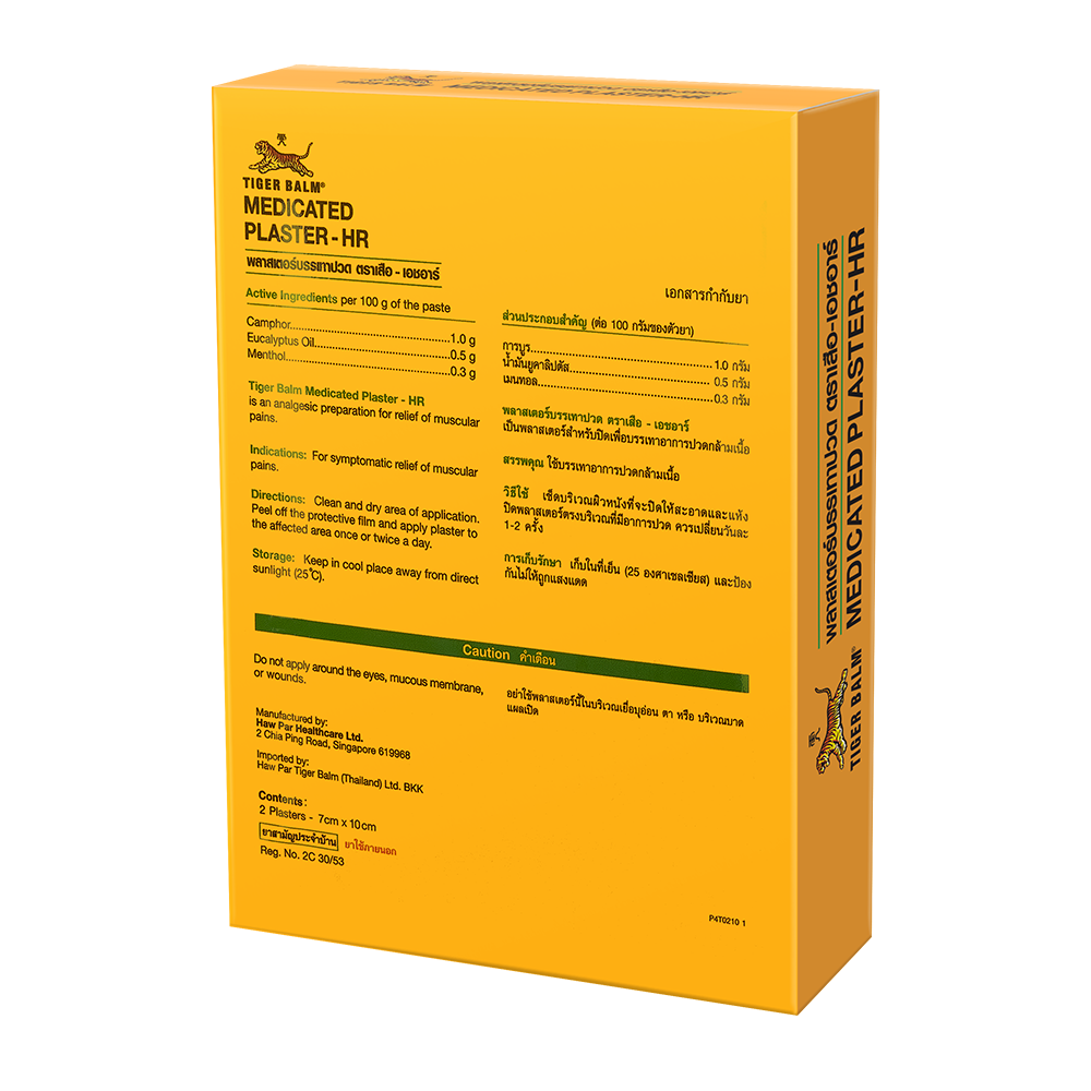 ผสานตัวยาสมุนไพรสูตรของตราเสือเข้ากับแผ่นไฮโดรเจล พลาสเตอร์บรรเทาปวด ตราเสือ-เอชอาร์ ช่วยบรรเทาอาการเคล็ด ขัดยอก ฟกช้ำ และปวดกล้ามเนื้อ พลาสเตอร์บรรเทาปวด ตราเสือ-เอชอาร์ ใช้เทคโนโลยีแผ่นไฮโดรเจล ที่ช่วยกักเก็บและปล่อยตัวยาเข้าสู่กล้ามเนื้อ และมีความยืดหยุ่น ไม่รั้งเส้นขน ระบายอากาศได้ดี ติดและลอกออกได้ง่าย โดยไม่ทิ้งคราบบนผิว.